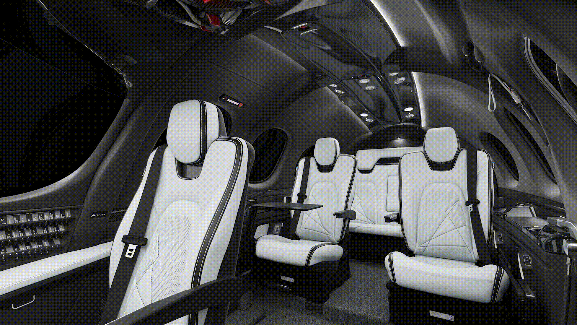 Kabína ponúka dve panoramatické okná pre pilota a kopilota s výhľadom cez 180°, a navyše veľké okná po celej dĺžke lietadla, ktoré vytvárajú priestranný a pohlcujúci zážitok pre cestujúcich.